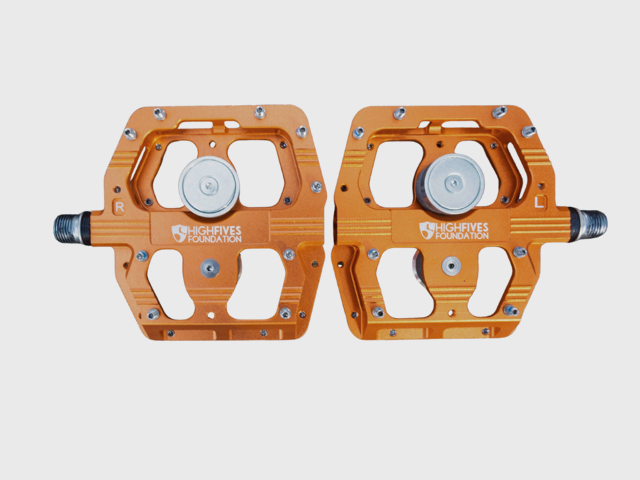 Here at magped, we’re proud to support adaptive athletes — and we’ve seen firsthand how our pedals can help riders with mobility challenges get back to doing what they love. That’s why we’re stoked to team up with the incredible High Fives Foundation to launch a limited-edition GRAVITY pedal in our best-selling orange finish, complete with the High Fives logo.